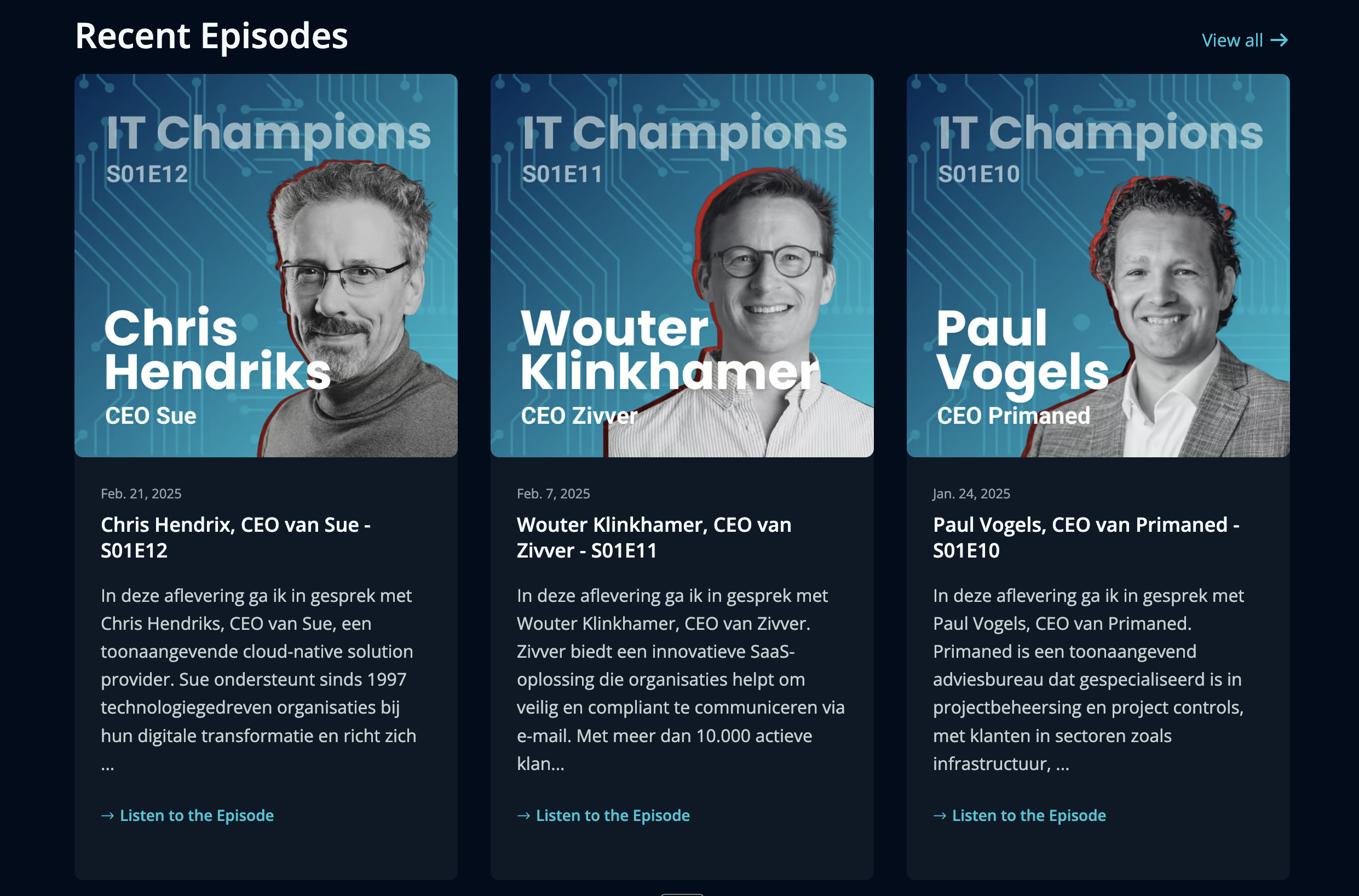 Wij gebruiken de IT Champions-podcast anders. We nodigen CEO's van onze tier 1-accounts uit als gast. Zij komen voor het podcastgesprek. Wij bouwen een echte relatie.